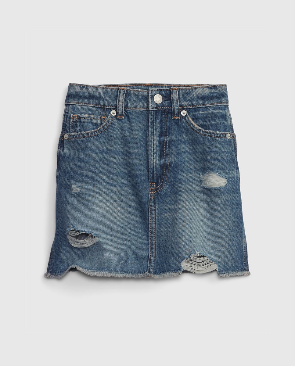 Falda de niña vaquera corta con bolsillos laterales
