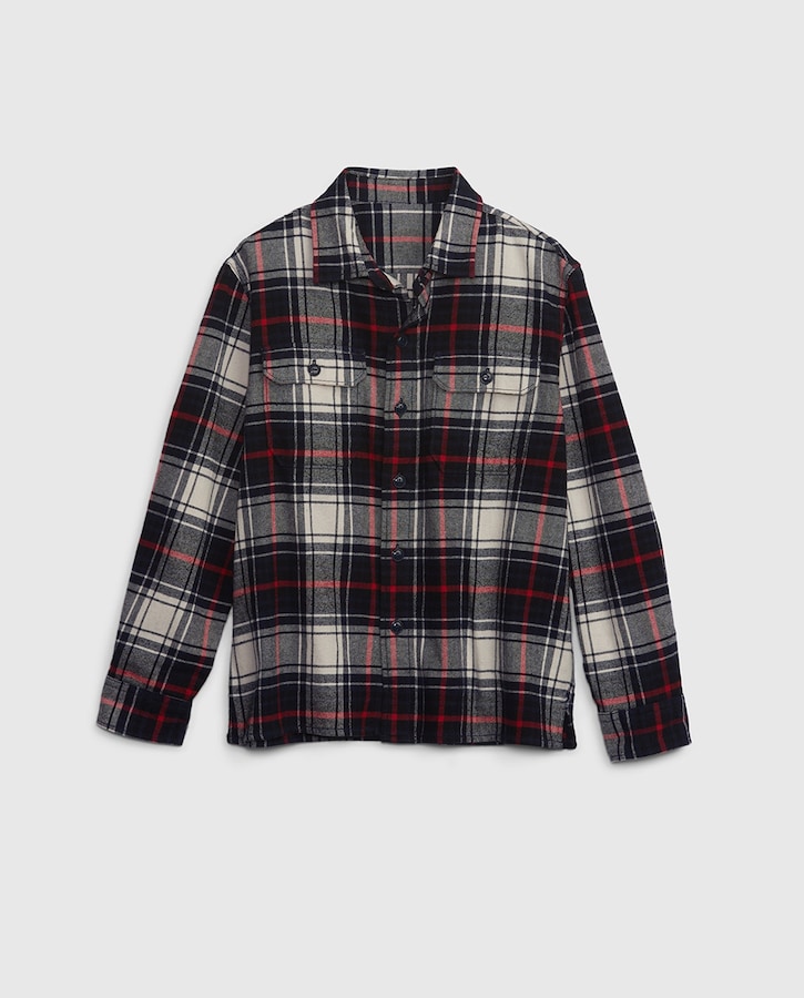 Camisa manga larga de franela con estampado de cuadros