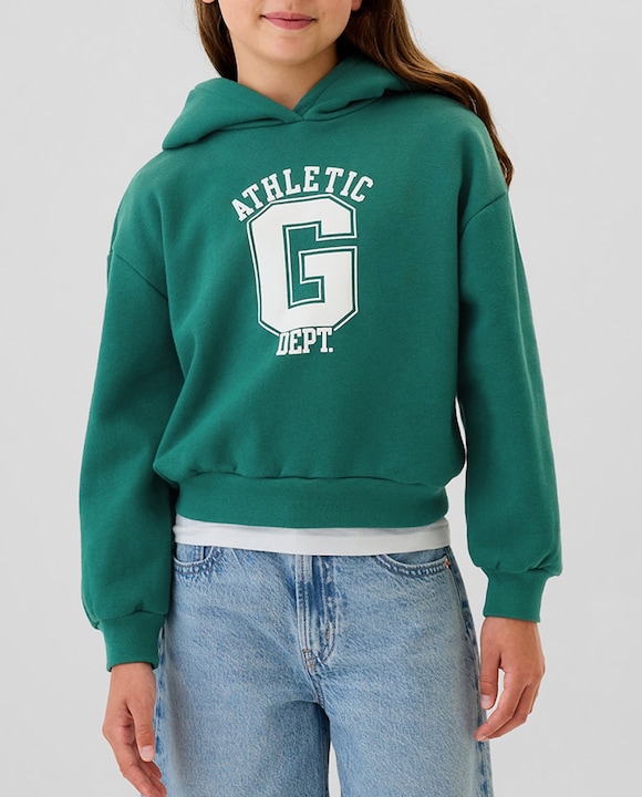 Sudadera de niña con capucha sin cremallera con dibujo frontal