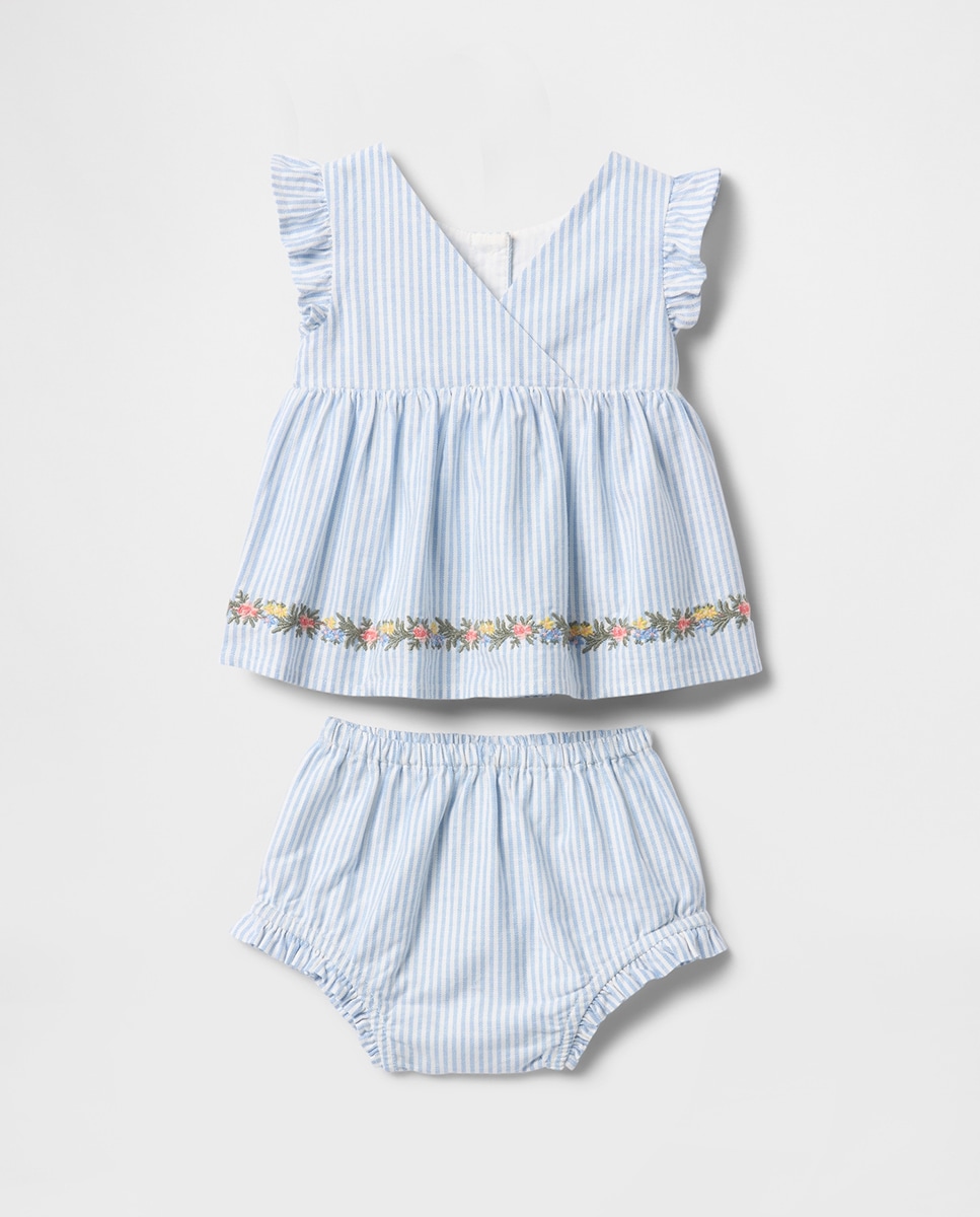 Conjunto de top con manga corta con volantes y cuello en uve con short de bebé niña