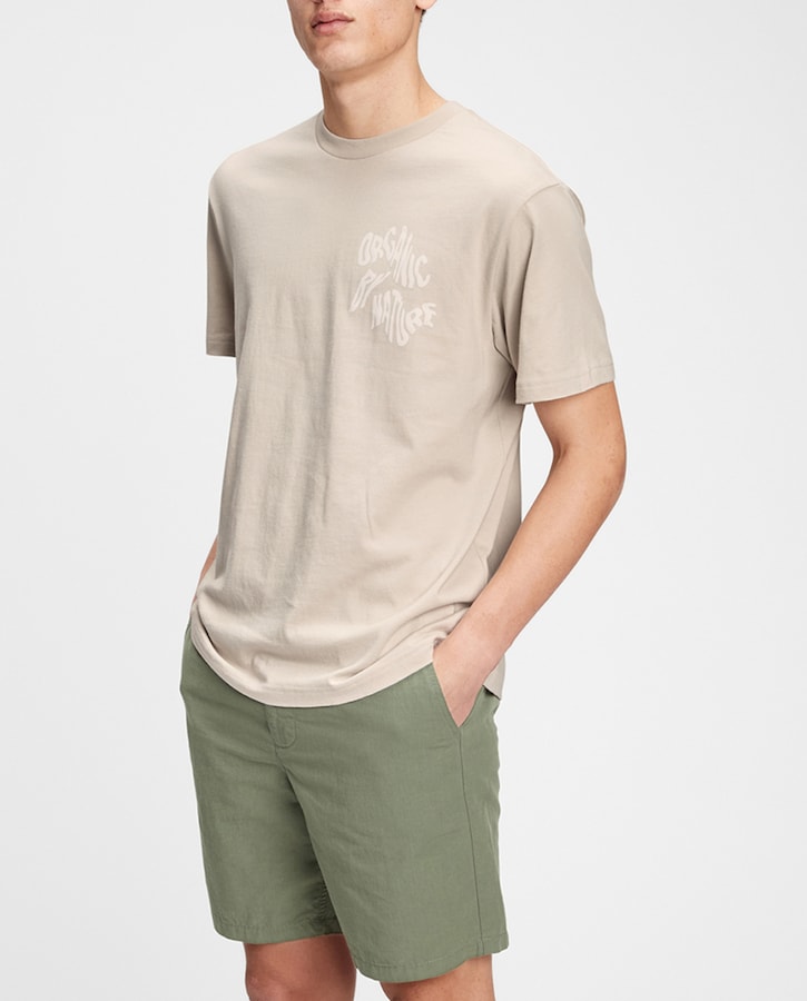 Camiseta de hombre en algodón orgánico marrón claro de manga corta