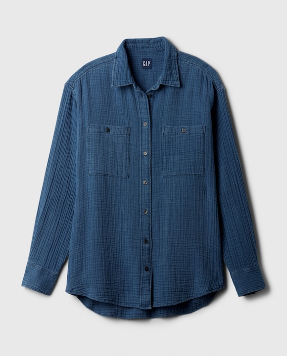 Camisa de mujer denim con cuello camisero y bolsillos delanteros de plastrón