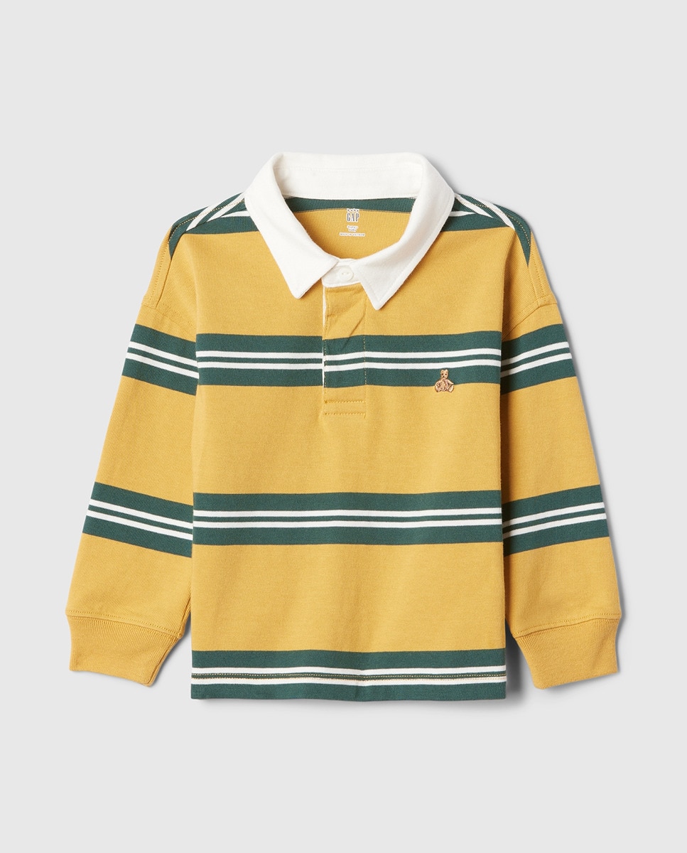 Polo de niño de rugby de rayas con tapeta de botones y manga larga