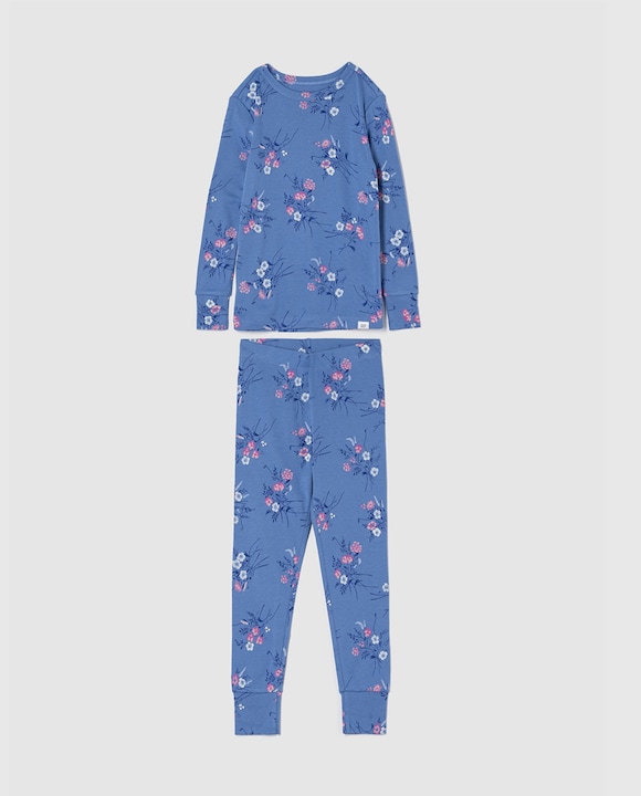 Pijama de niña de flores con pantalón largo y camiseta de cuello redondo de manga larga