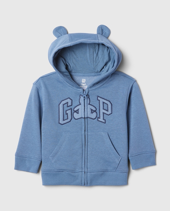 Sudadera de bebé niño con capucha y cremallera de manga larga con Logotipo de arco de brecha con gráfico de oso en la parte delantera y trasera