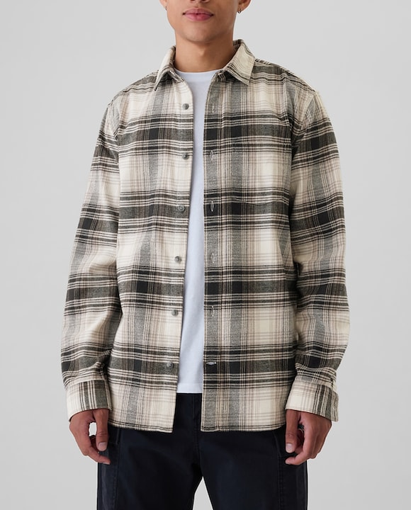 Camisa de hombre de franela de cuello punta y manga larga con botones
