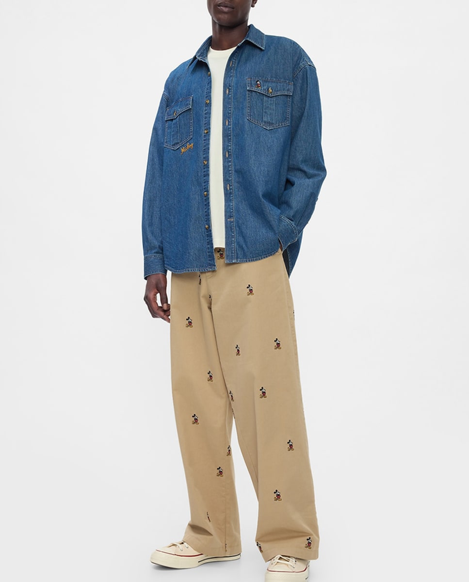 Pantalón de hombre holgado con cierre de botón y gráficos de personajes de Disney bordados