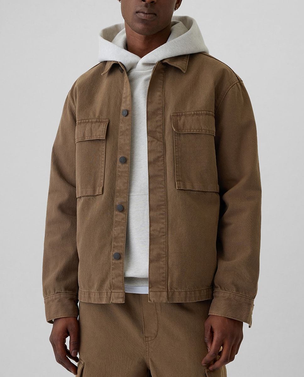 Sobrecamisa de hombre con botones frontales y bolsillos de parche en el pecho