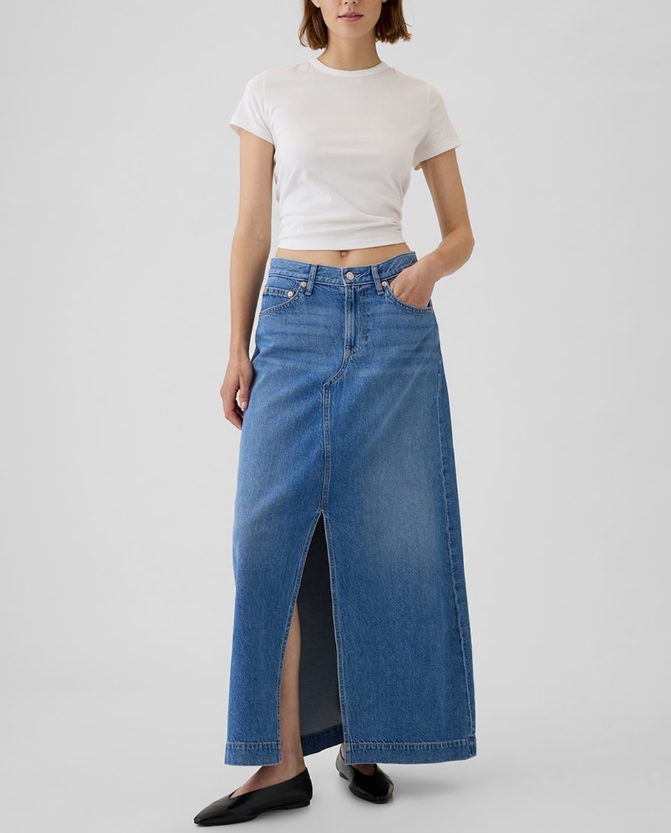 Falda larga vaquera de mujer con abertura delantera