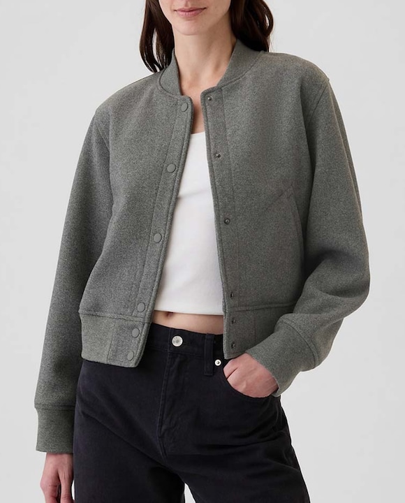 Cazadora bomber de mujer con cuello acolchadoy bolsillo delanteros inclinados