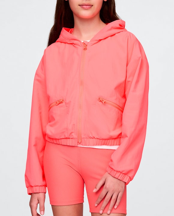Chaqueta cortavientos de nailon con capucha y cremallera frontal de niña