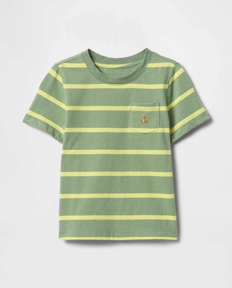 Camiseta manga corta, cuello redondo y con bolsillo bebé niño