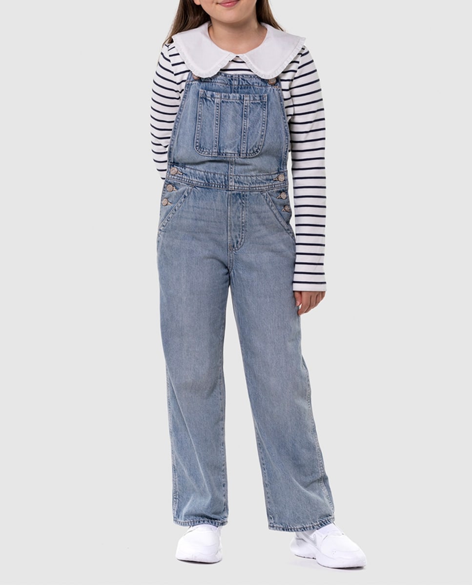 Peto vaquero con cinco bolsillos de niña