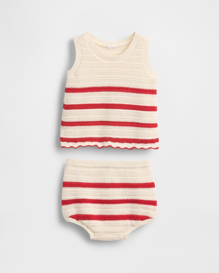 Conjunto de top y pantalón corto de punto de ganchillo de algodón suave de bebé