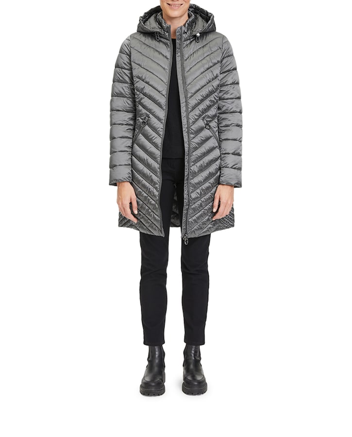 Chaqueta 3/4 de plumas de corte femenino con capucha mujer
