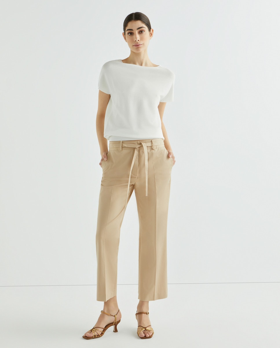 Pantalón de mujer recto algodón con lazada