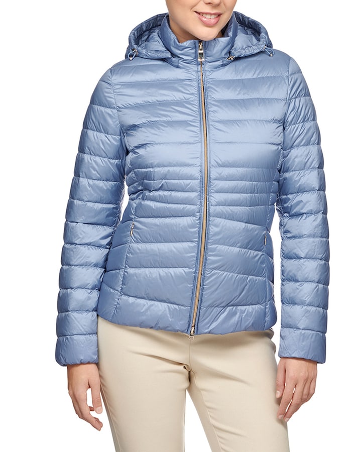 Plumifero acolchado corto de mujer con capucha desmontable