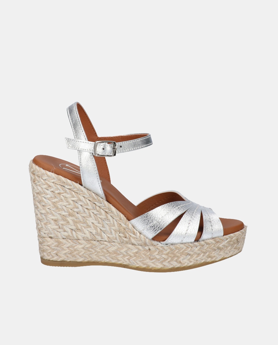 Alpargatas de cuña de mujer en piel con plataforma
