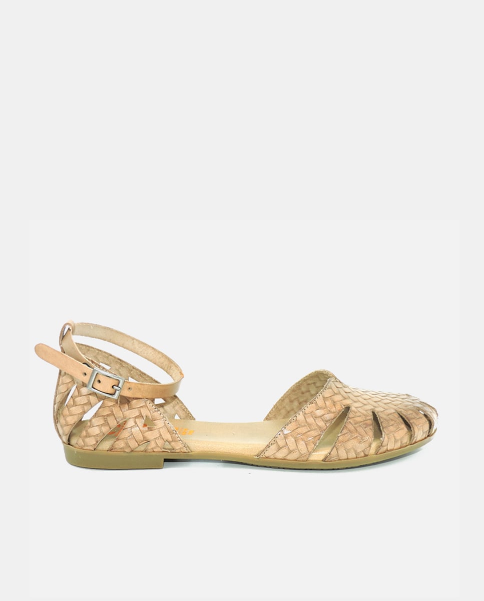 Zapatos planos de mujer en piel con pulsera al tobillo