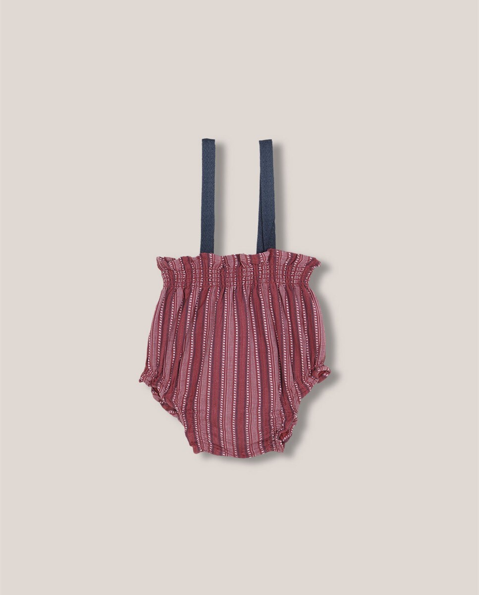 Bombacho de bebé de rayas con tirantes a contraste