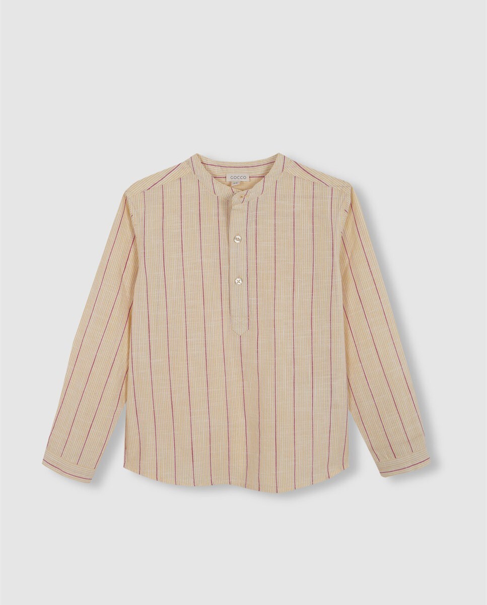 Camisa de niño de manga larga de rayas con cuello mao
