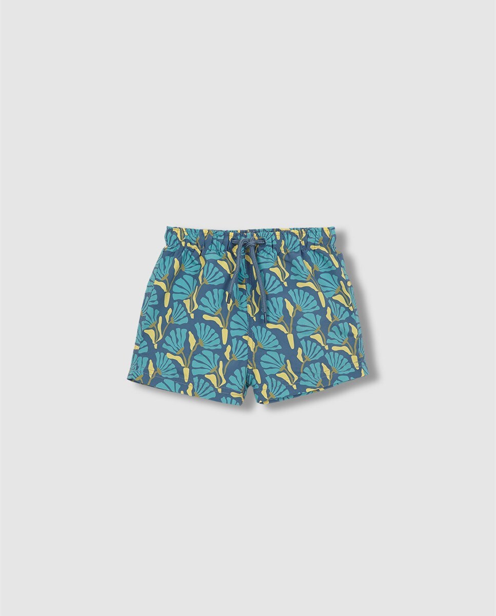 Traje de baño de bebé niño de flores con cordón ajustable a contraste