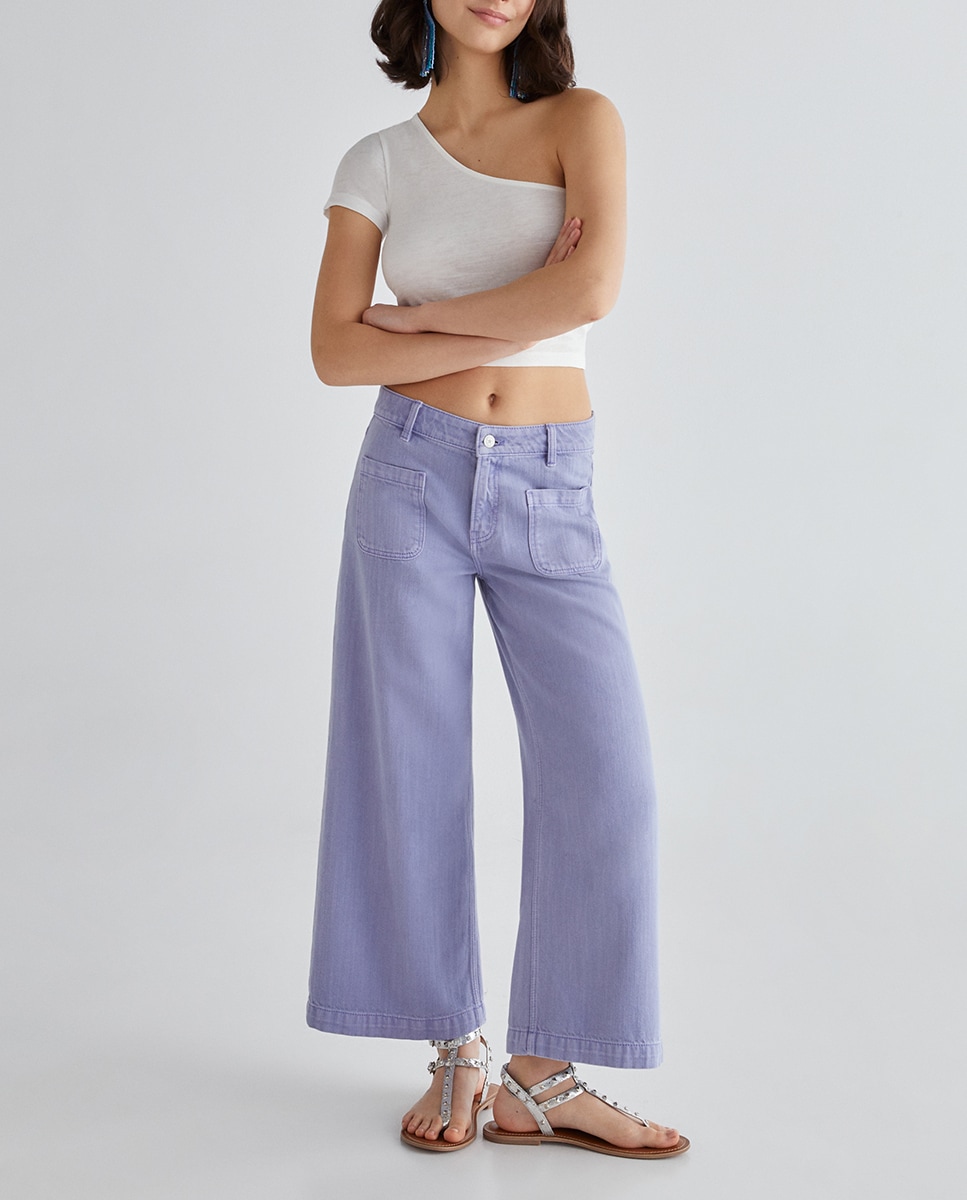 Pantalón vaquero wide leg crop mujer