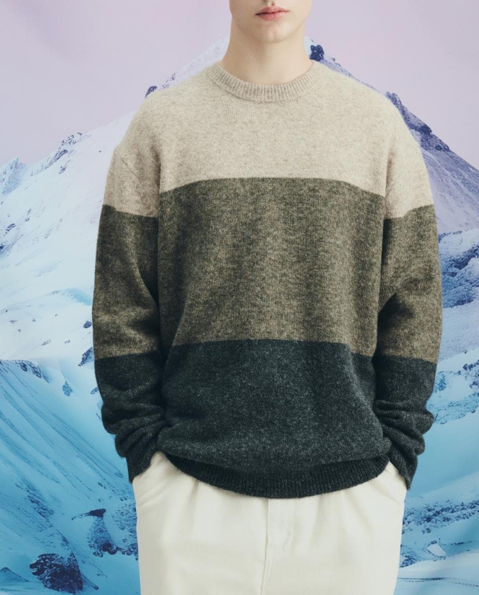 Jersey cuello caja de hombre con mezcla lana y acabado soft