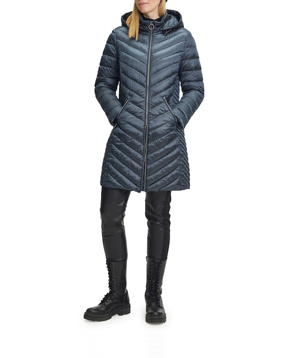 Chaqueta 3/4 de plumas de corte femenino con capucha mujer