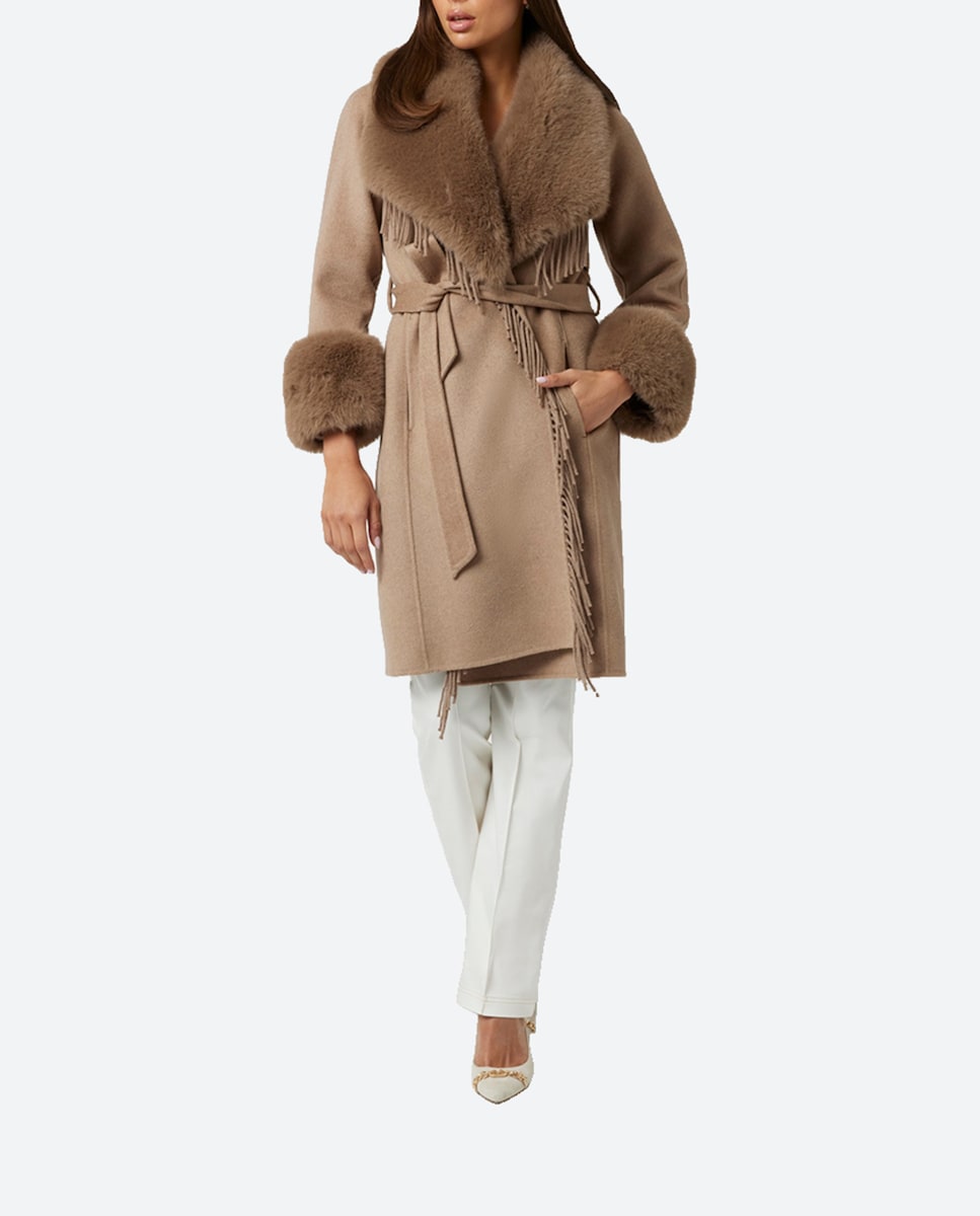 Abrigo fluido con pelo de mujer