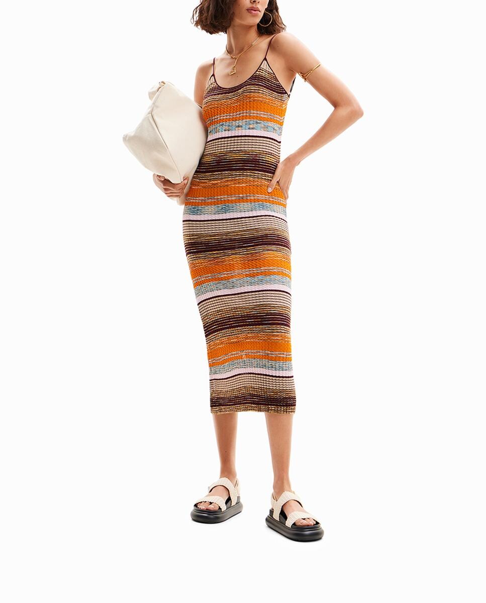 Vestido midi canalé rayas