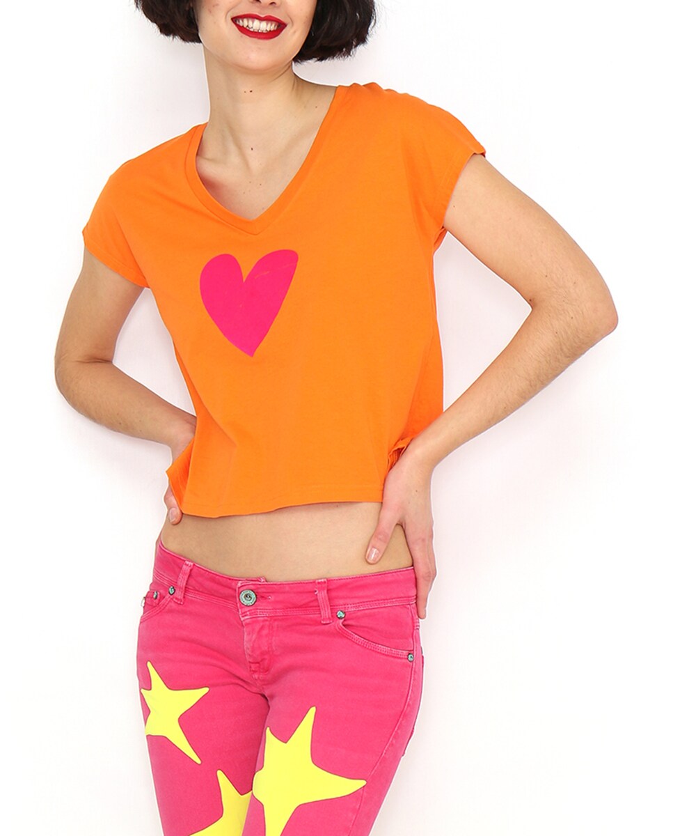 Camiseta de mujer corazón cuello pico