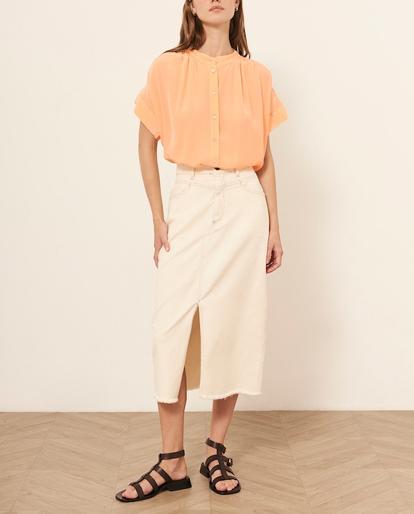 Blusa de manga corta caída en jacquard, lazada por detrás.