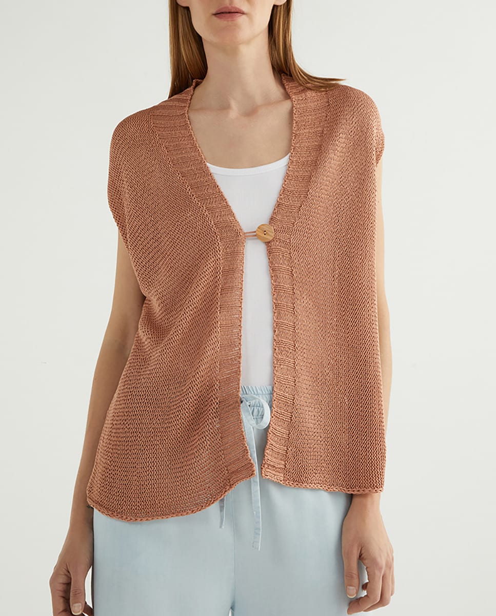 Chaleco de mujer cuello pico con botón.
