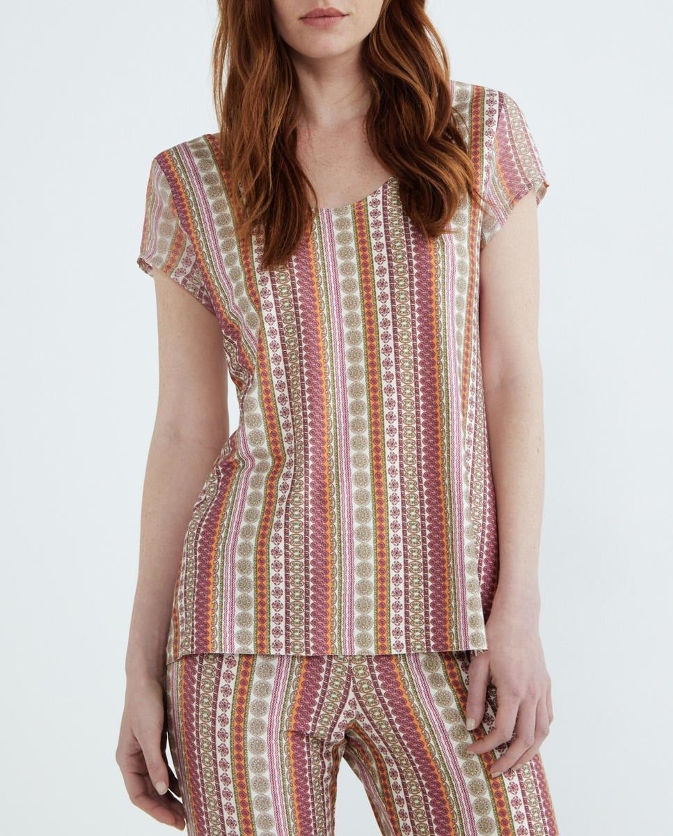 Camiseta manga corta con escote doble pico