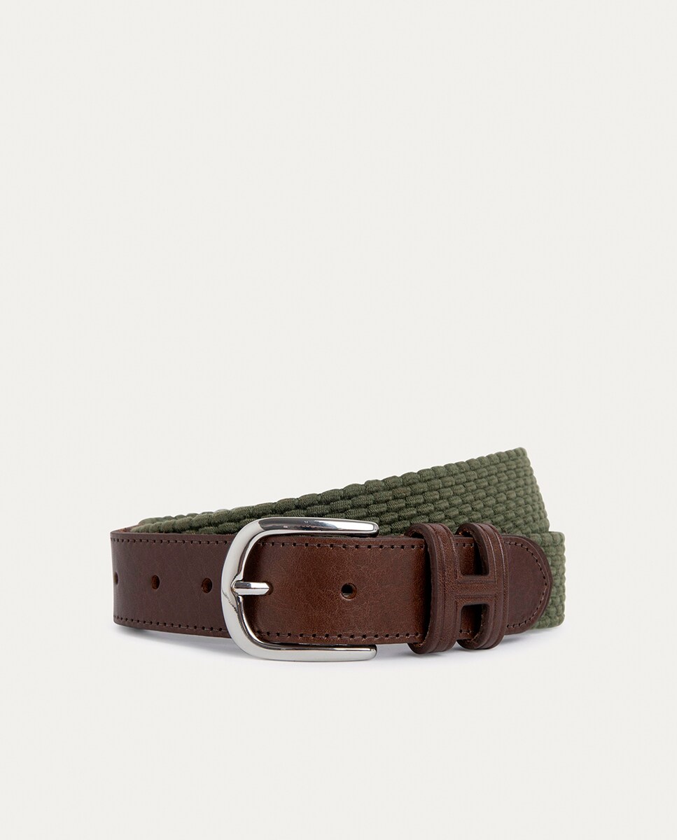 Cinturón de hombre trenzado en color verde marino con detalles en piel