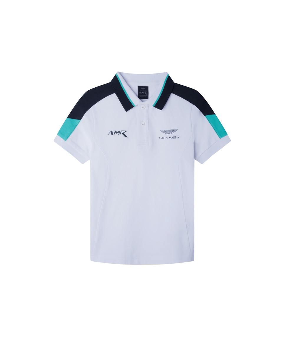 Polo de niño en color con colorblock en hombros y cuello de Aston Martin Racing