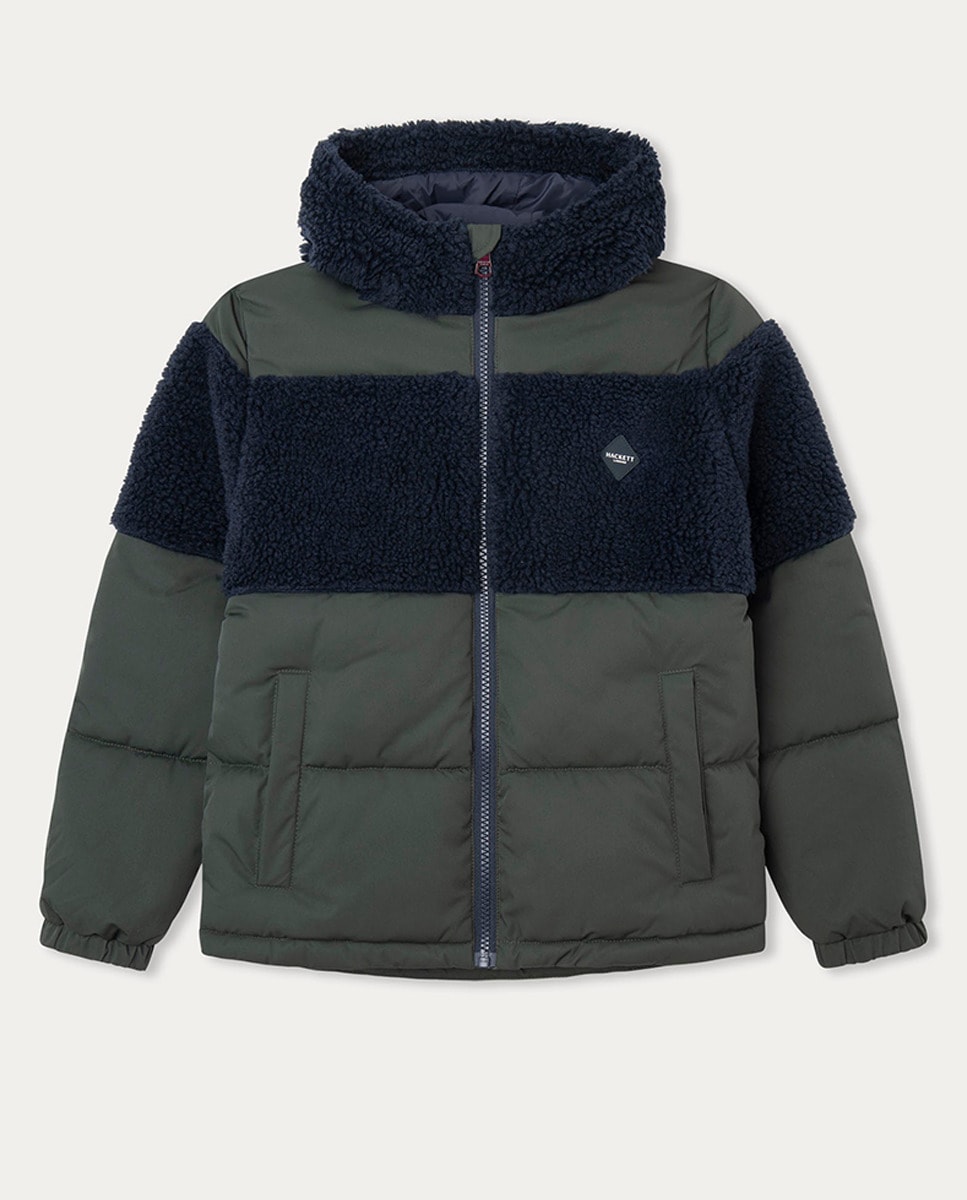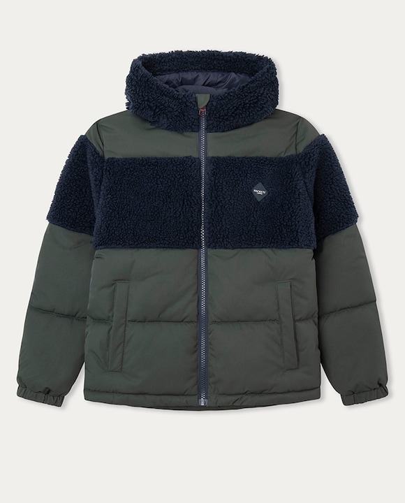 Chaqueta bomber de niño con contrastes de tejido en borrego