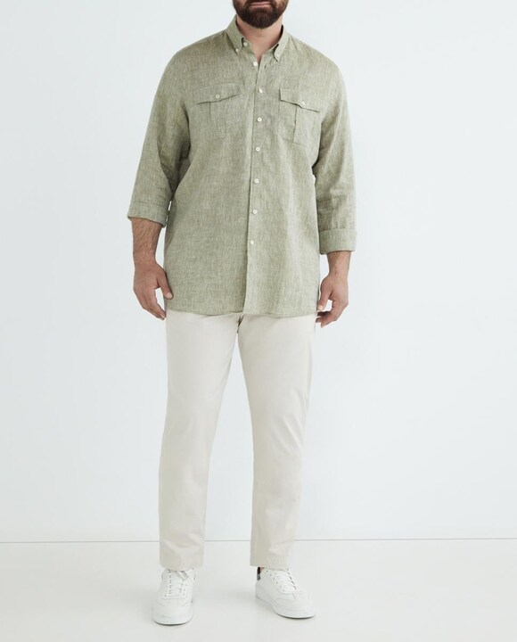 Camisa de hombre classi fit lino delavé caldera con dos bolsillos tallas grandes