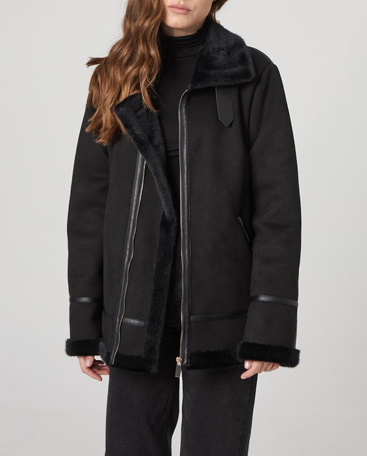 Cazadora biker doble faz pelo suave de mujer