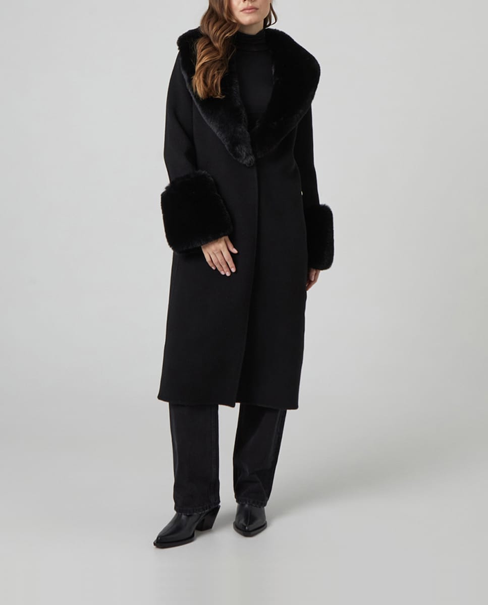Abrigo largo cinturon handmade detalles pelo puño y cuello de mujer