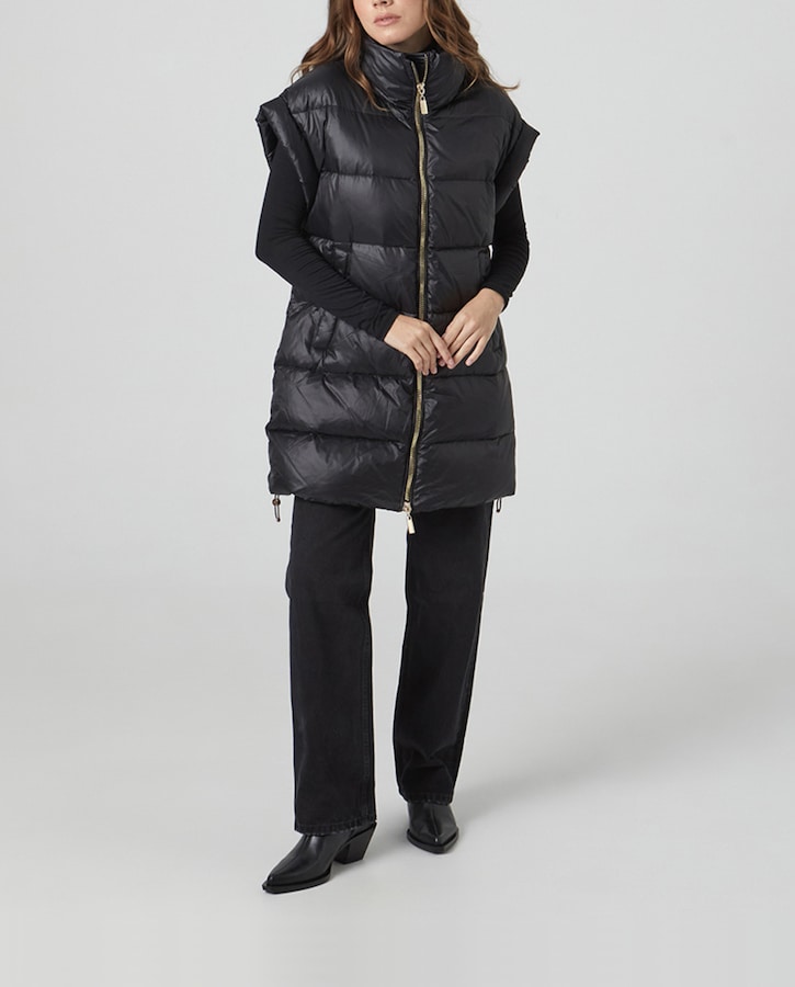 chaleco plumifero manga caida nailon de mujer