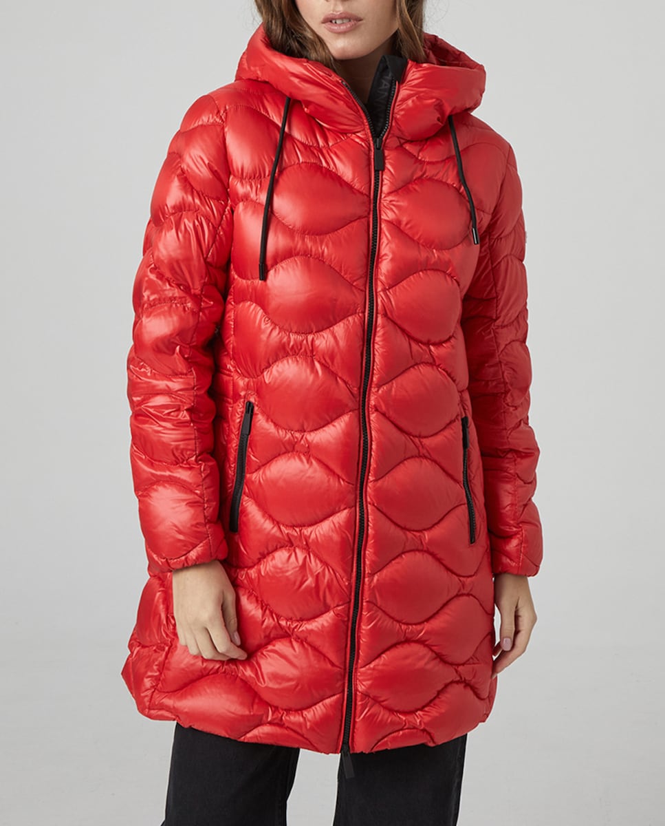 Plumifero largo capucha cinta contraste de mujer