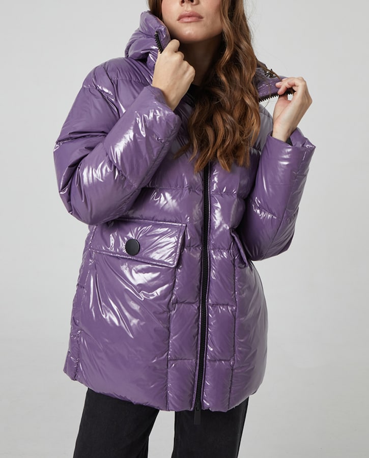 Plumifero engomado capucha de mujer