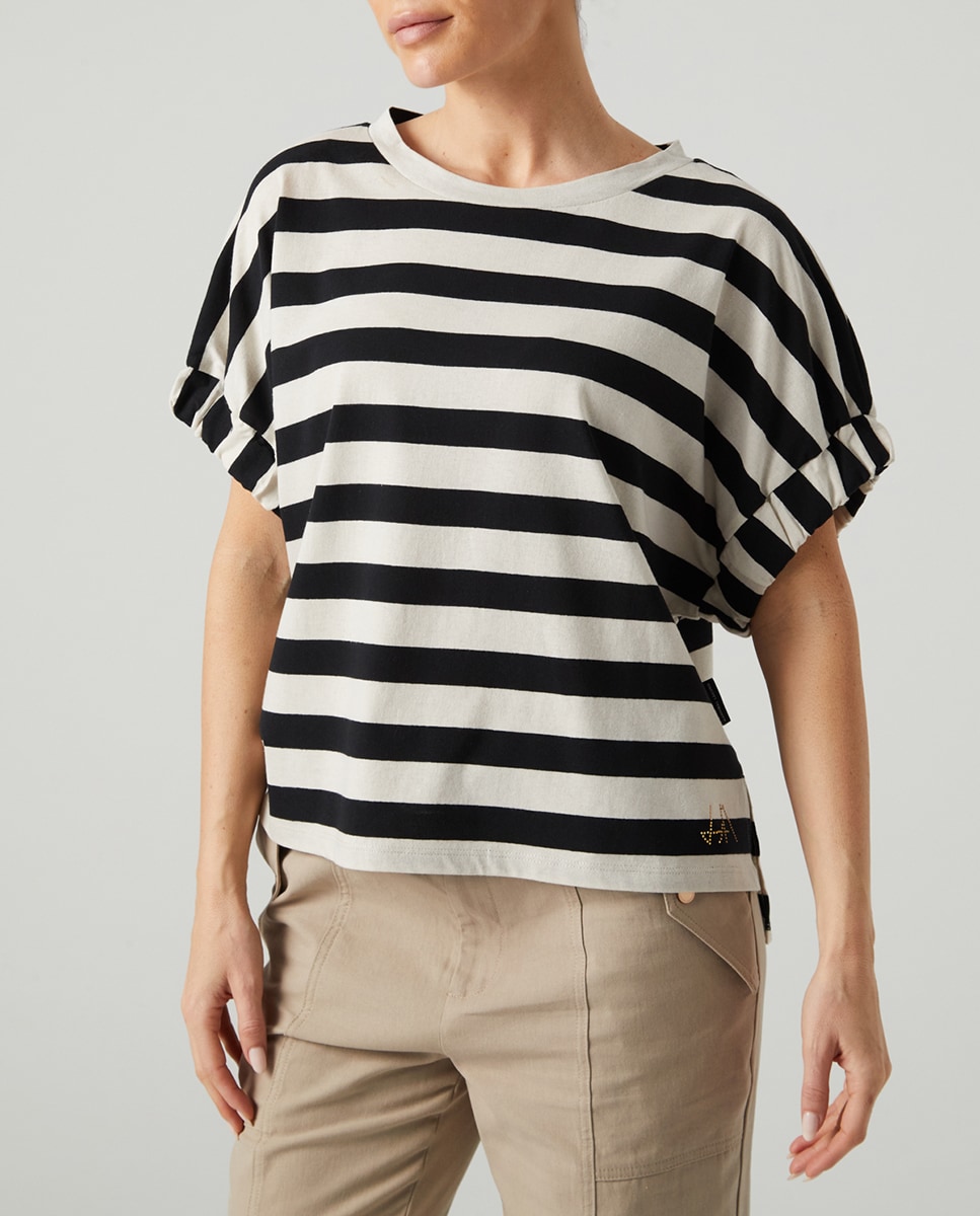 Camiseta de mujer con rayas en contraste