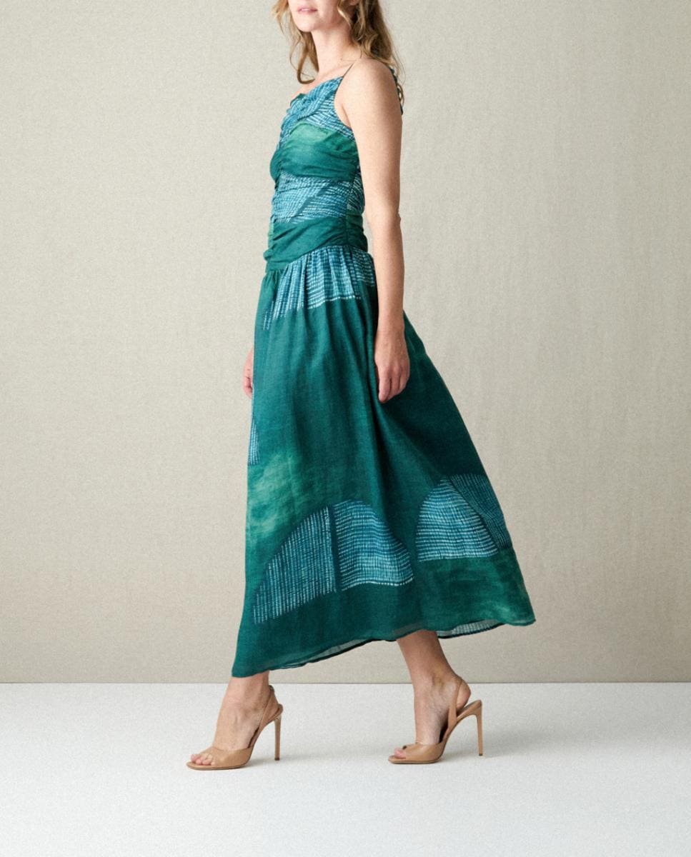 Vestido midi cuerpo fruncido estampado