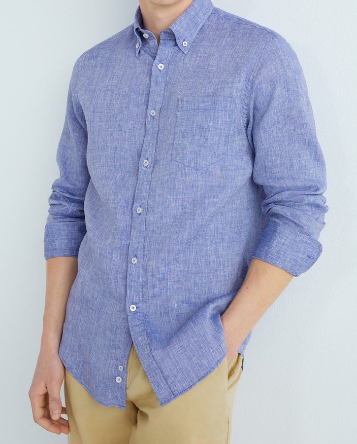 Camisa de hombre manga larga bolsillo pecho lino