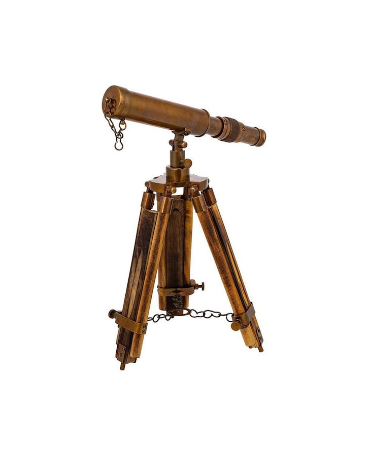 Telescopio con trípode de madera y metal
