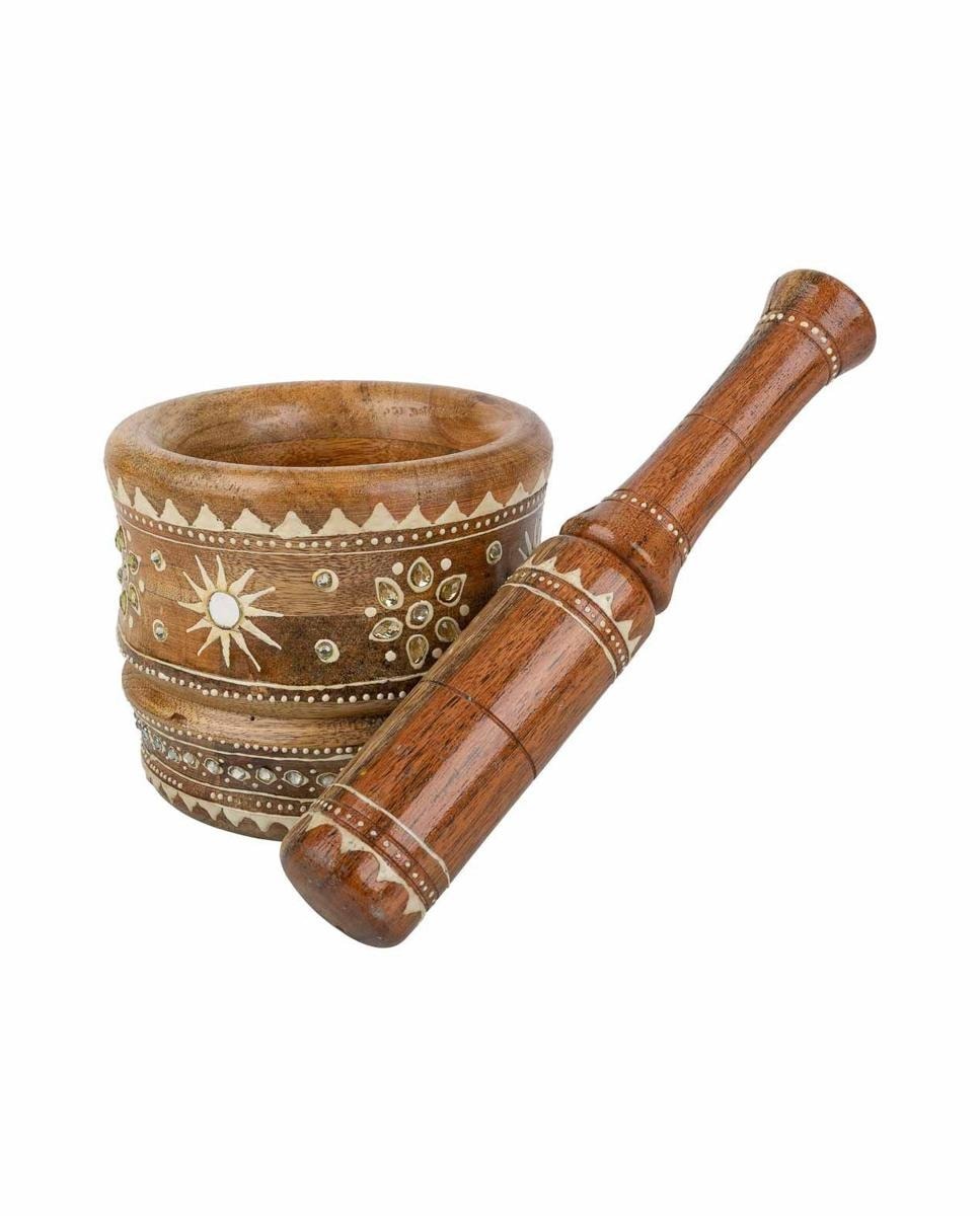 Mortero de madera pintado artesanal marrón