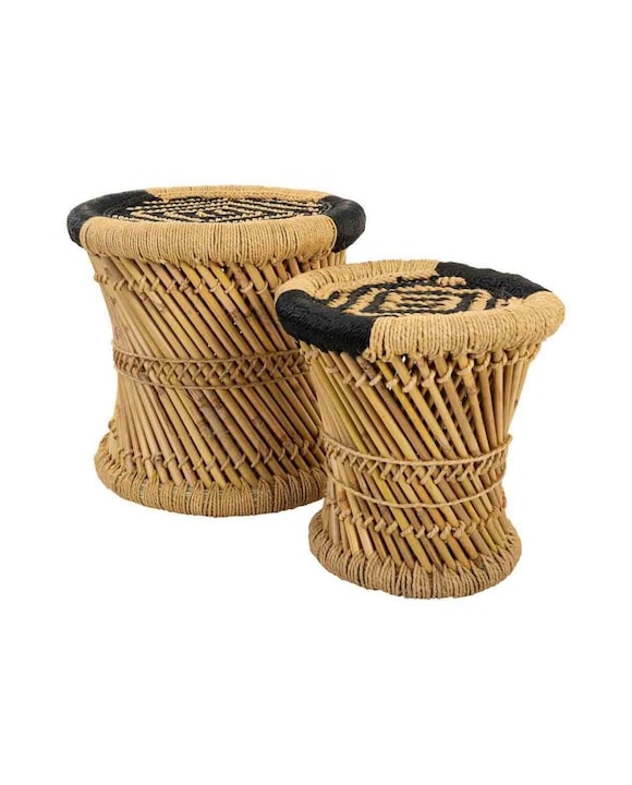 Set 2 taburetes de bambú natural y negro